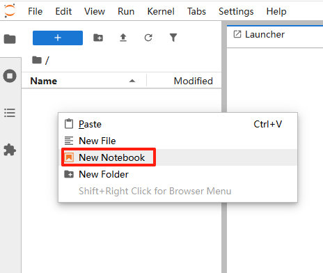 稍等片刻服务器启动,启动后即可到JupyterLab页面